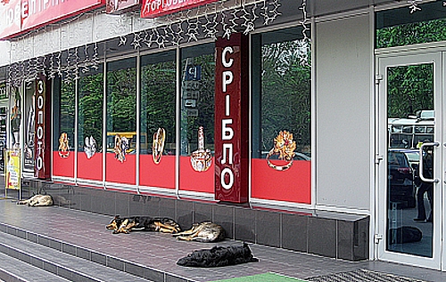 О собаках: у Чернігові в центрі міста знайшлося чотири VIP-бродячих собаки. Вони відсипаються виключно під ювелірними салонами