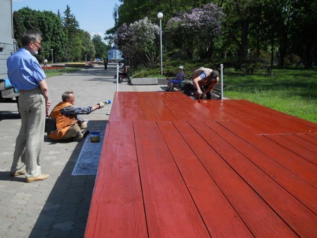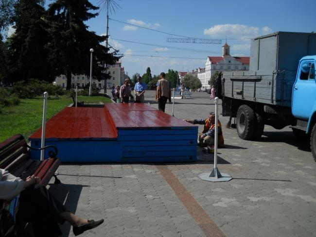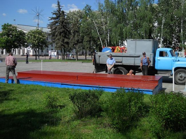 Сегодня в 15 часов, проходя по Аллее Героев увидел, что на том месте, где по выходным черниговцев развлекает оркестр «Меридиан», уже установлена довольно большая сцена. Трое рабочих приводили ее внешний вид в надлежащее состояние.