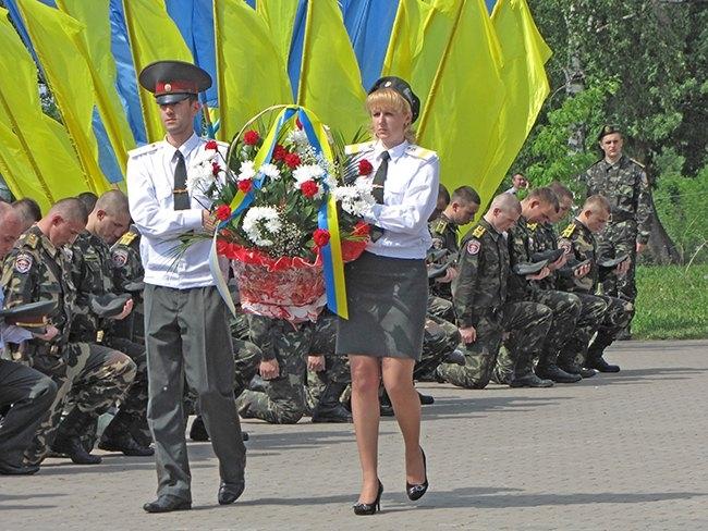 Захід розпочався із вшанування пам`яті героїв-патріотів, які віддали своє життя за свободу і незалежність Української держави. Право покласти квіти до меморіального каменя «Борцям за волю і незалежність України» надано кращим випускникам коледжу – молодшому лейтенанту внутрішньої служби Наливайко Денису та старшому сержанту внутрішньої служби Кравченко Оксані.