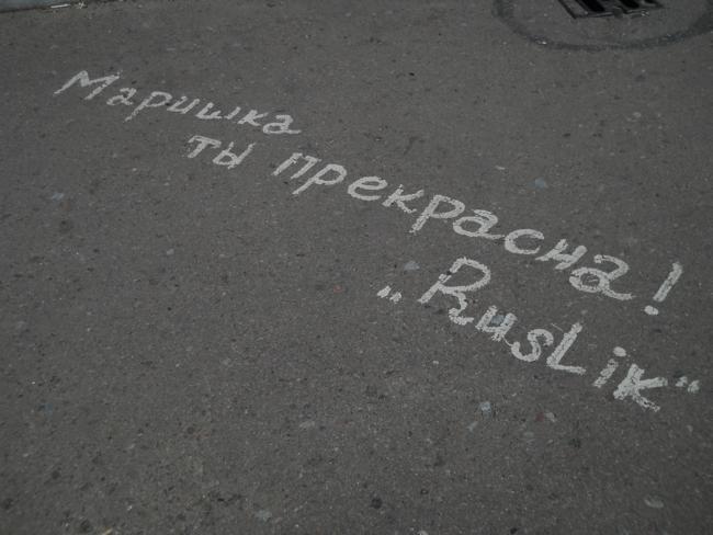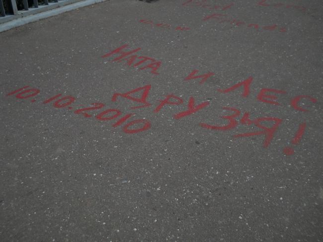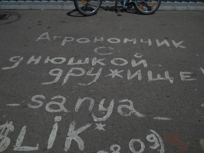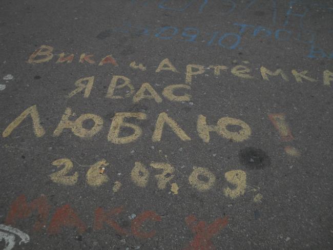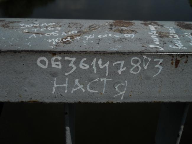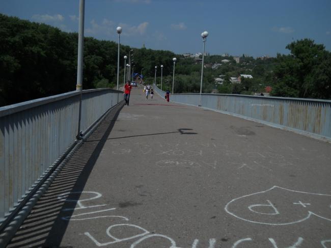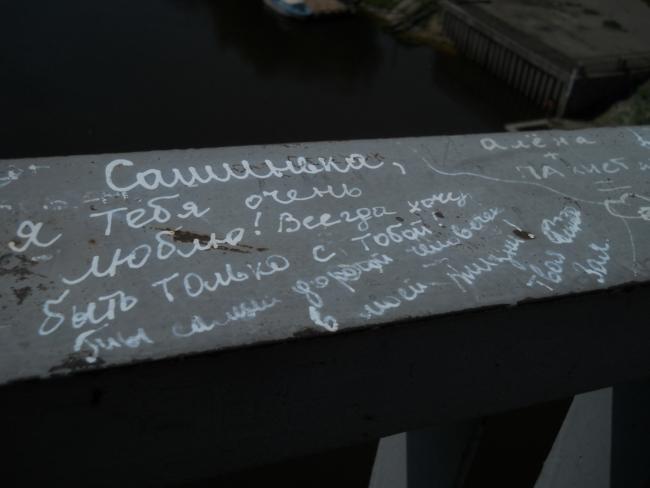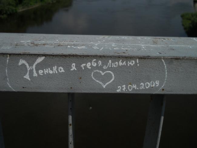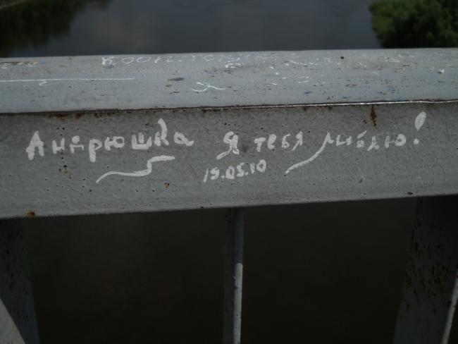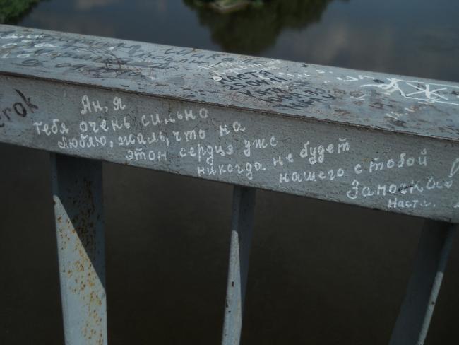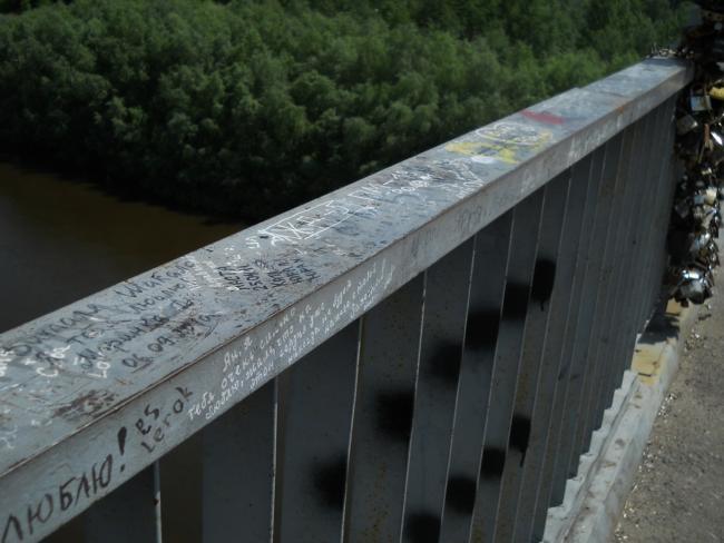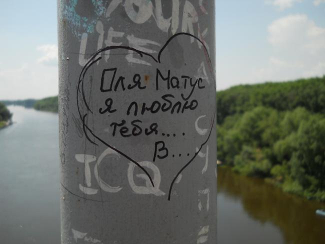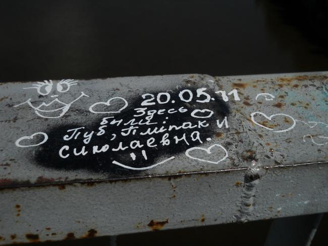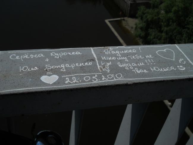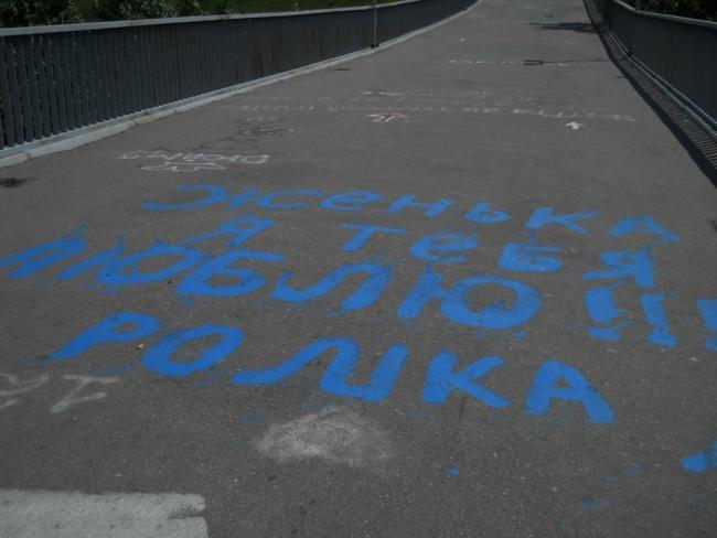 А вообще, «пешеходник», с которого открывается шикарнейшая панорама и в одну, и в другую сторону, просто стонет от любовных «татуировок» на своем бетонно-металлическом теле.