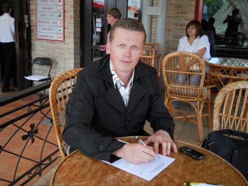 8. Владимир Кожевников, гость из Риги: я участник проекта «Украина слезам не верит». В Чернигов приехал в гости к моему другу Виталию Таганову. Я участвую в мюзикле «Стиляги», который он поставил. Конечно, попасть в суперпроект интересно и престижно. Но, если и не попаду – не огорчусь, жизнь на этом не кончается. А плюсы участия в кастинге уже есть. Познакомился с девушками и, по их просьбе, дал им автограф.