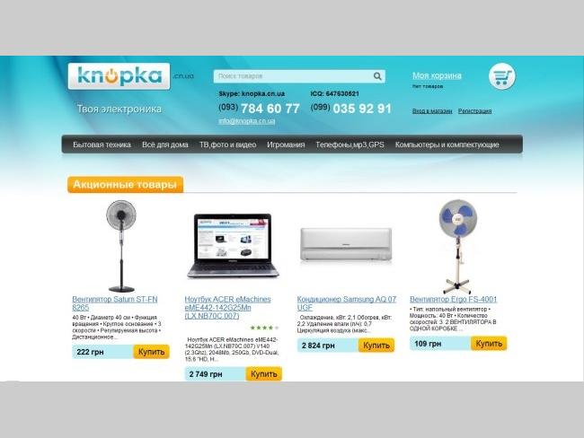 Яркий мир техники от интернет-магазина Knopka принесёт в ваш дом уют. С нами вы легко сможете выбрать стиральную машину, приобрести новый ноутбук или пылесос, кондиционер в комнату, микроволновку в кухню, цифровой фотоаппарат или телефон. А также у нас вы найдёте приборы для укладки волос, принтеры и мониторы, вытяжки, обогреватели и многое-многое другое...