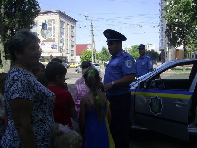 Спершу «охоронці доріг» нагадали дітлахам про правила безпечної поведінки на дорозі, потім продемонстрували транспортні засоби на яких інспектори ДПС несуть службу. Хлопчики та дівчатка мали змогу посидіти на патрульному мотоциклі, в службовому автомобілі, спостерігали як працює світлова та звукова сигналізації.