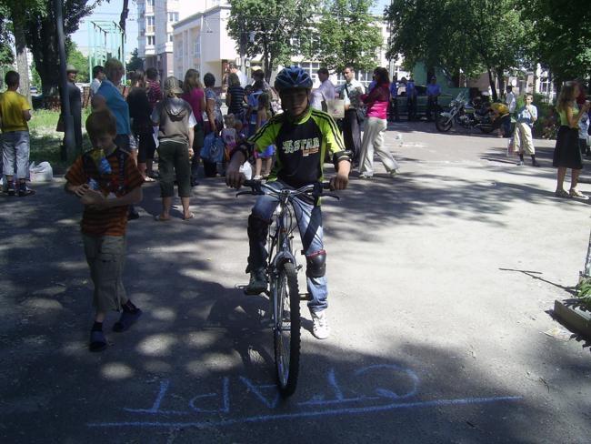 З великим задоволенням хлопчики брали участь у велоестафеті, яка включала в себе кілька етапів - «змійку», «колійну дошку», «габаритну вісімку», «габаритний коридор», «тунель», перехрестя, виконавши знаки регулювальника. Дівчатка ж віддали перевагу конкурсу малюнка на асфальті. Переможці конкурсів були відзначені почесними грамотами.