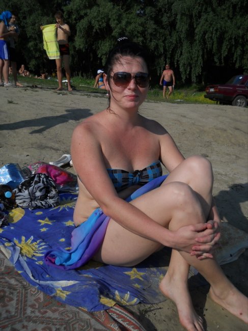 Татьяна Чередниченко, предприниматель: я здесь с подругой и дочерью Анечкой. Живем рядом. Этот пляж не нравится – очень много мусора. Берег тоже сильно крутой, неудобно заходить в воду. Чаще ходим на переправу, там песок и чище. Кремами пользуюсь – по ситуации. И для загара, и от него. Детям сегодня взяли воду и бутерброды, себе пиво и чипсы. Я просто лежу и загораю. Особо делать здесь и нечего. Пока главная задача следить за детьми. Здесь есть мель и им раздолье. Вода на мели теплая – можно плескаться сколько хочешь. На морях бываем регулярно. Уже взяли билеты на Симферополь, оттуда, наверное, на Коктебель.