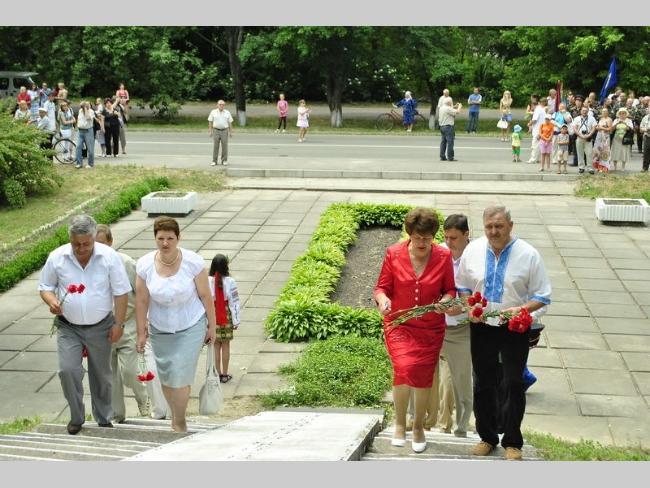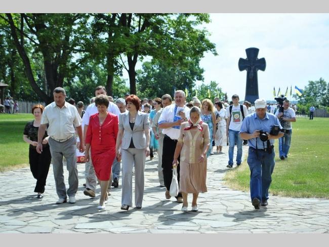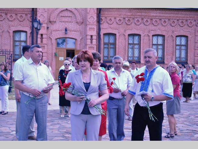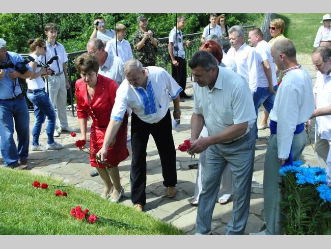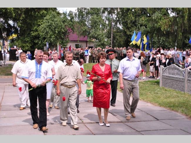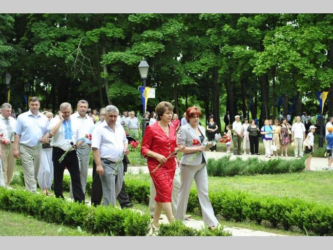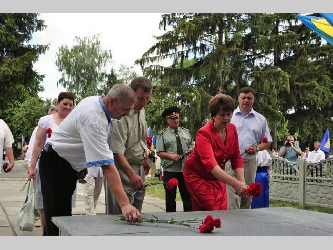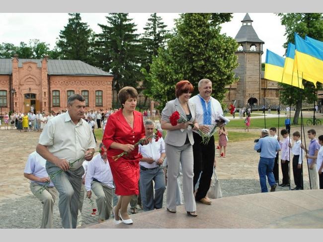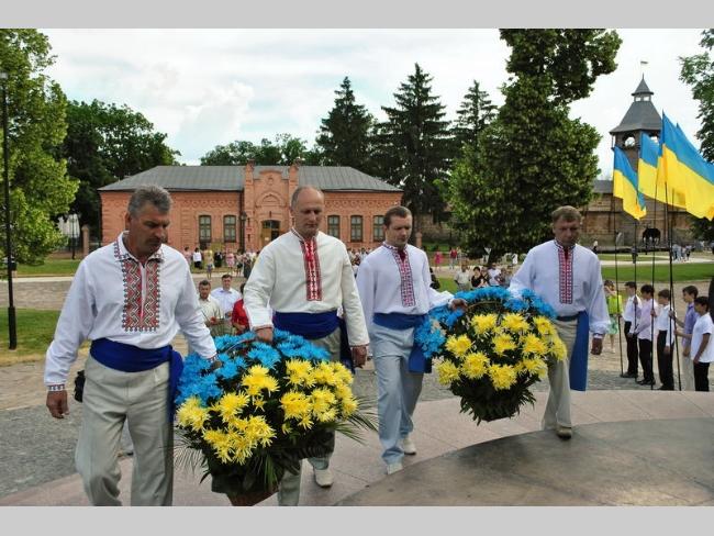 Після молебню офіційні особи, представники козацтва і громадських організацій поклали квіти до пам'ятного знака жертвам Батуринської трагедії, а потім – до скульптурної композиції "Гетьманська слава".