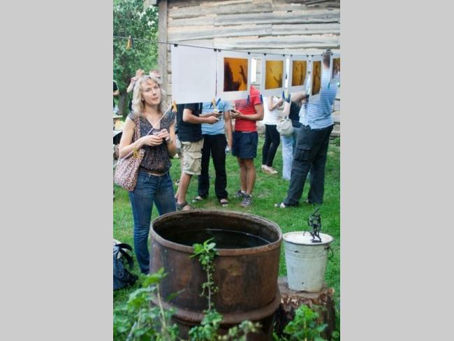 Виставка проводилася в незвичному форматі квартирника – роботи були розвішені у дворі та на стінах приватного будинку, а відвідувачі пили чай сидячи на траві. Близько 21-ї години організатори розгорнули на одній зі стін будинку екран і показували фільм. Мабуть, не випадково був обраний і сам фільм - "Зйомки в палермо", режисера Віма Вендерса, бо розповідає про «творчі муки» фотографа.