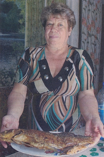 — Чим ще здивуєш гостей, як не нашою рибою, — говорить директорка Мньовської школи 59-річна Ольга Гетта.—Тільки у нас рибу печуть і сушать у печі. Я не місцева, з села Ліски Менського району, але дитинство минуло у Воркуті, куди поїхали мої батьки на заробітки. Коли призначили сюди директором і мова зайшла про будівництво будинку для мене, голова райради Буренок ходив по цьому місцю і планував: «Тут буде зал, там — спальня, а отам поставим піч. Будеш пекти мньовську рибу, а на старості кістки погрієш». Я не вміла до тієї печі і поступитись. А потім люди всього навчили.