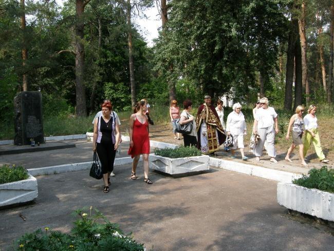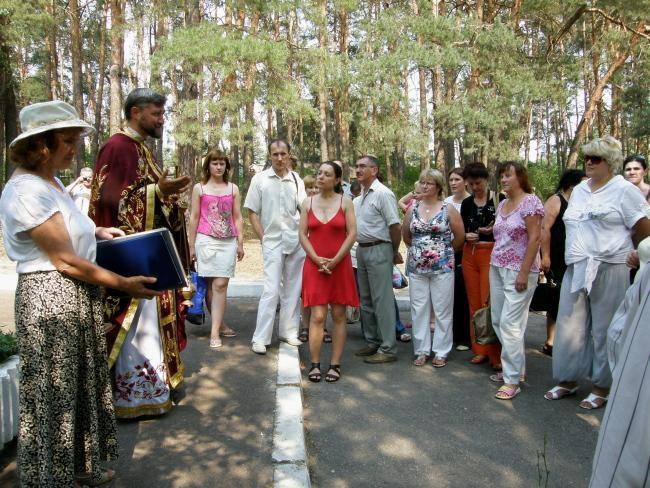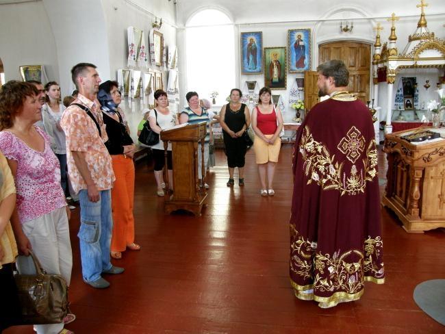 Белорусы также заказали молебен с чином водоосвящения, который для гостей нашего города провел священник храма Михаила и Федора Черниговских отец Андрей. Батюшка сначала рассказал белорусским гостям про сам храм, его чудесный иконостас и иконы, про черниговского князя Михаила и боярина его Федора, замученных в Орде в 1246 г. После посещения храма, паломники отправились на Святое озеро. Поскольку водитель «Неоплана» решил не испытывать судьбу и не рискнул спуститься в урочище «Святое», к озеру пришлось добираться пешком, через лес.