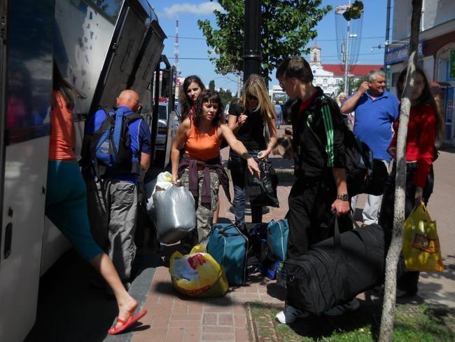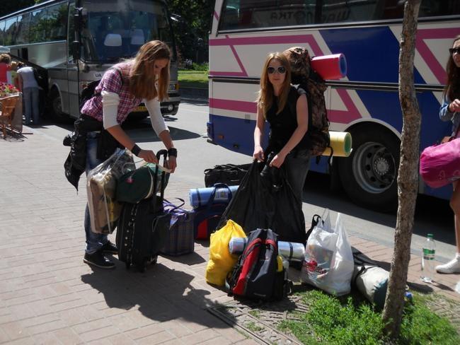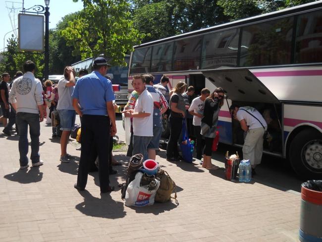Сегодня, 22 июня, в 11 часов случайно оказался в районе площади у популярного городского кафе «Шарлотка». Обратил внимание на припаркованные рядом три больших автобуса. Тут же, к ним активно начали подтягиваться, нагруженные рюкзаками, парни и девушки.