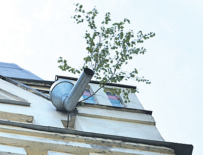 На крыше библиотеки Короленко растет березка! И за что только, бедная, держится?