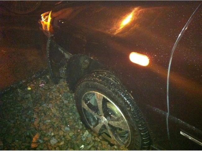 Причём, никаких предупредительных знаков не было! В результате происшествия у авто отлетел бампер и сломался усилитель руля, чуть не пострадали шины и диски,также имеется множество мелких повреждений.