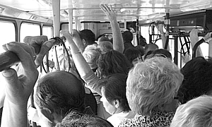 Этот снимок сделан 25 мая 2011 года в 17.24 в троллейбусе маршрута №6. Это характерная ситуация для пассажироперевозок в «пиковое» время для нашего города. Не забудьте, что через это скопление народа должен еще протиснуться и кондуктор, чтобы «обилетить» каждого пассажира…