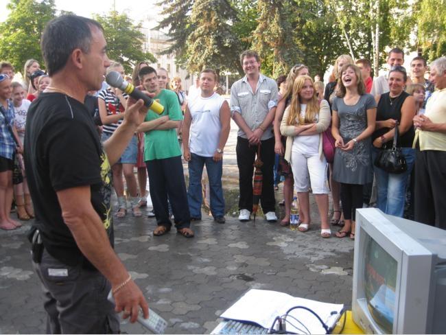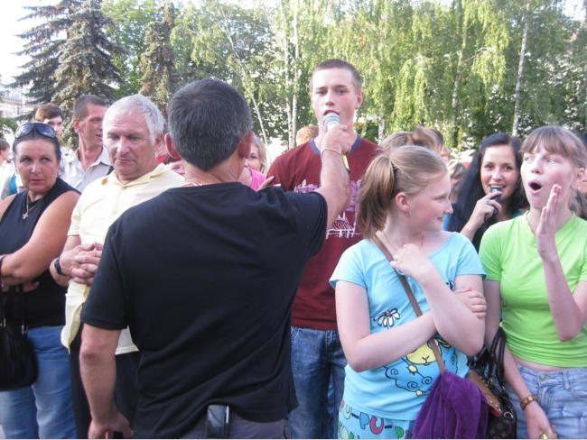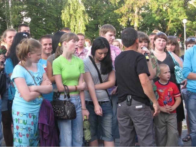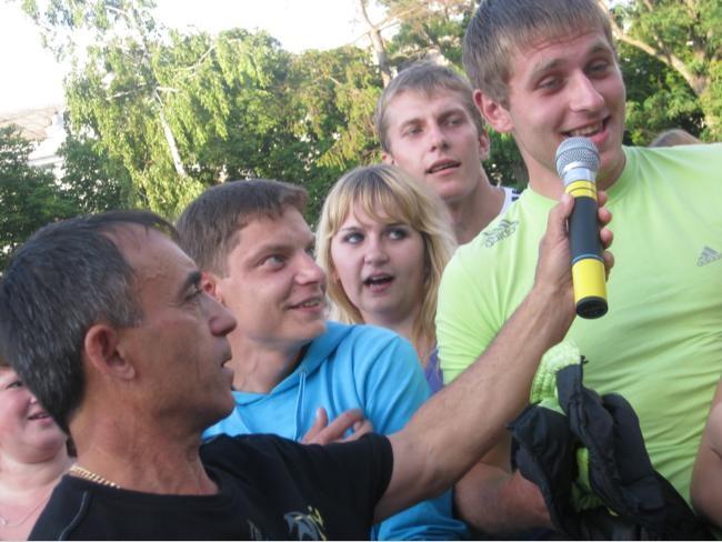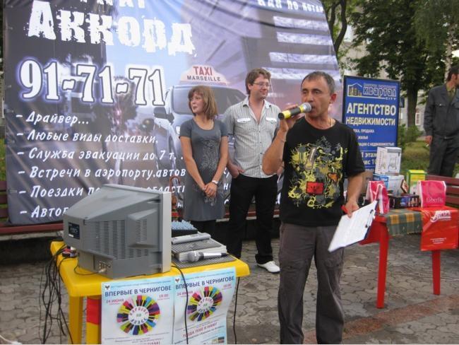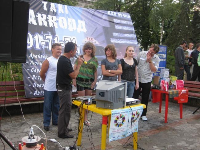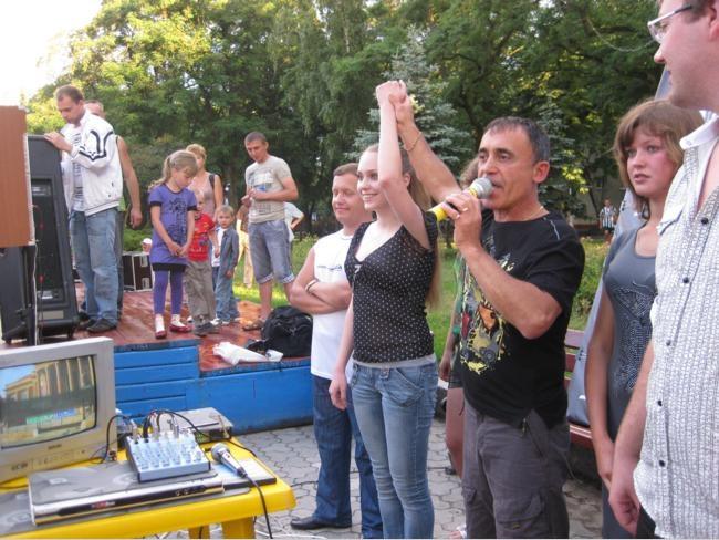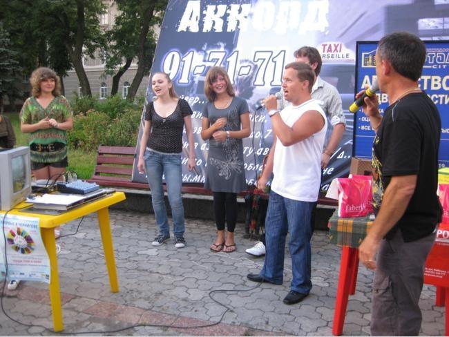 Руслана Ширай, главный организатор проекта: мы уже давно, еще раньше одесситов, хотели сделать такой проект, да как-то руки не доходили. Опыт проведения развлекательных мероприятий у нас немалый, а именно с караоке, вообще, огромный. Все давно отработано и обкатано на различных мероприятиях. Подумаем, может быть, привлечем к программе проекта выступление танцоров и других черниговских талантов. А вообще, сегодня все прошло здорово. Я довольна. Кто пришел, не пожалел – было, действительно интересно. Конечно, всем, кто помог – огромное спасибо. Следующая встреча 15-го июля!