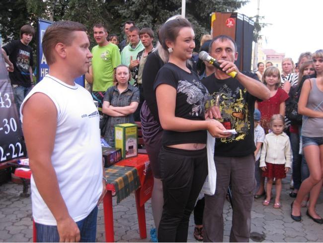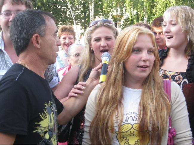 Ирина Пекельная, победитель первого этапа проекта: мы с мамой и ребенком оказались на Аллее возле караоке случайно. Пришли на фестиваль воздушных шаров, а тут музыка и приглашение поучаствовать в конкурсе. Попала в первый тур и потом оказалась победительницей. Спасибо всем, кто за меня кинул монетку. Даже не ожидала. Петь люблю, пою давно и всегда. Теперь буду ждать августа и суперфинала.