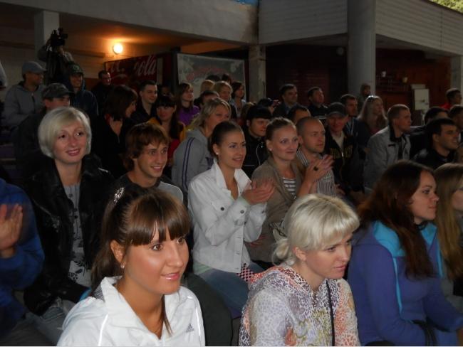 Артем Широкий, участник фестиваля (Чернигов): мы всегда принимаем на себя первый «удар» – начинаем программу и разогреваем публику для гостей. Считаю, мы сегодня выступили вполне достойно. Полностью согласен с решением жюри. Если бы было побольше призов, можно было бы отметить и ребят из Донецка. «Хрущ» – это наш проект. Название придумал или Сергей Фигляр, или кто-то из нашей команды, уже не помню. А именно «хрущ», потому, что когда придумывали название, вокруг летало много-много хрущей.