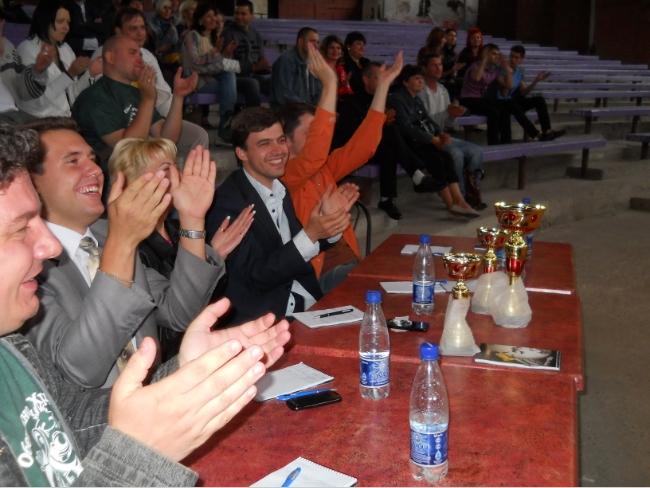 Юрий Музыка, председатель областной организации «Молодые регионы», член жюри: в жюри сегодня 5 человек. Состав профессионален и компетентен. Наша главная симпатия – не какая-то команда, а хорошее настроение зрителей. Уйти отсюда они должны только с позитивными эмоциями. Судить будем не столько строго, сколько справедливо. Главные критерии – остроумность, оригинальность, мастерство исполнения.