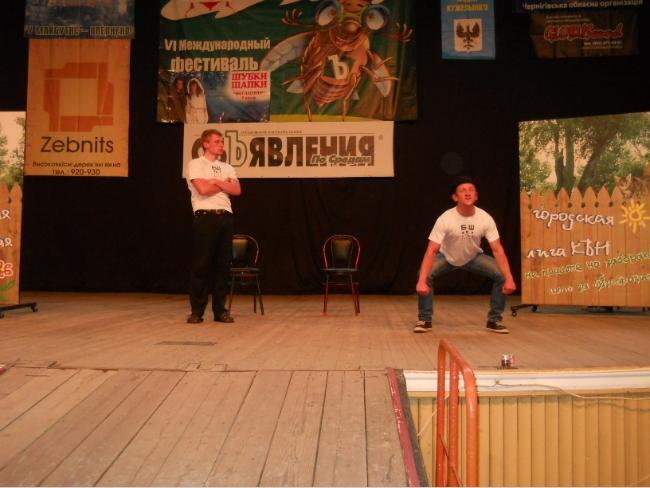 Затем на сцену начали выходить команды. Самую трудную миссию, быть первыми, взяли на себя черниговцы – творческий КВНный дуэт Широкий-Фигляр (команда« 7-Я»).
