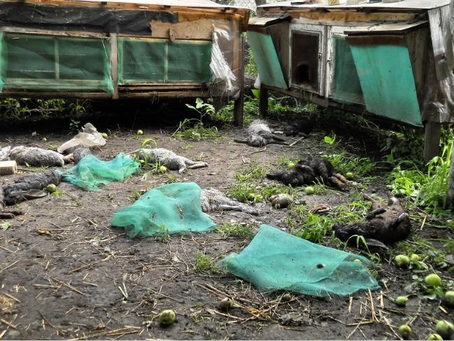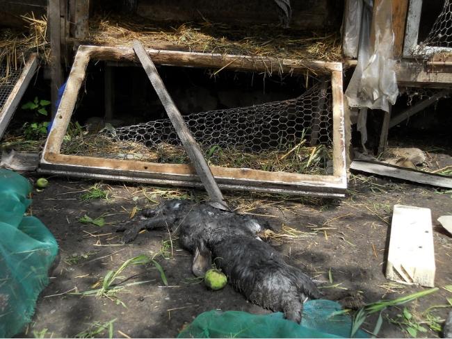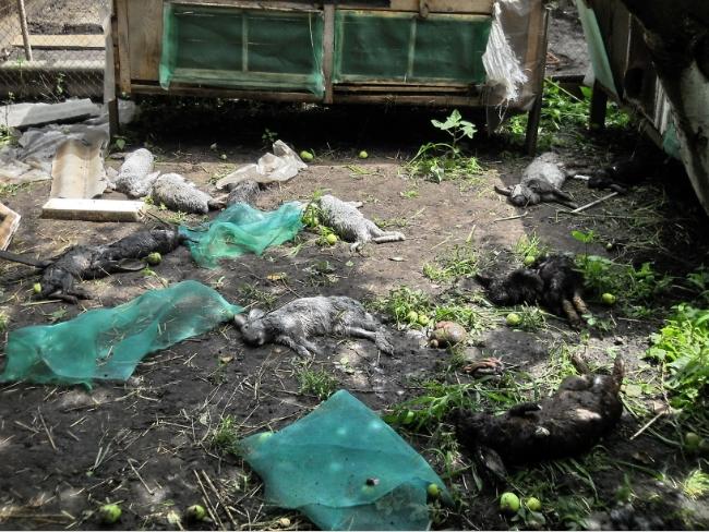 От себя добавлю, что к жалости можно приплюсовать и конкретные материальные убытки. Стоимость кролика на рынке, по словам хозяев, около ста гривен. 15 погибших кроликов – это полторы тысячи, плюс расходы на ремонт клеток. Про моральное потрясение даже и не говорю.