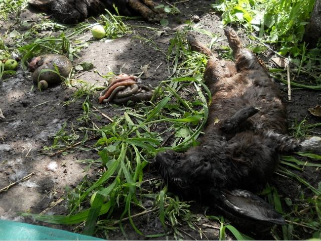 А сейчас загон, где находились кролики, напоминает поле боя. Даже не боя, а ночного побоища.