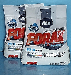 «Forax» - стиральный порошок с высоким коефициентом отстирывания как при низкой температуре 30* для цветных тканей, где сохраняется цвет, так и при 90* для белых, где сохраняется фактура ткани.
