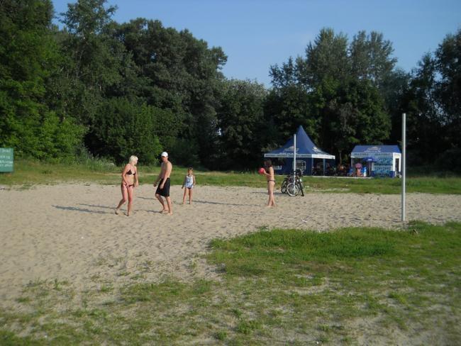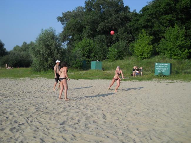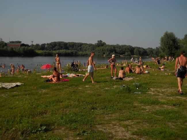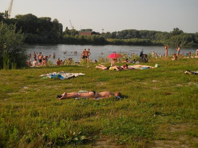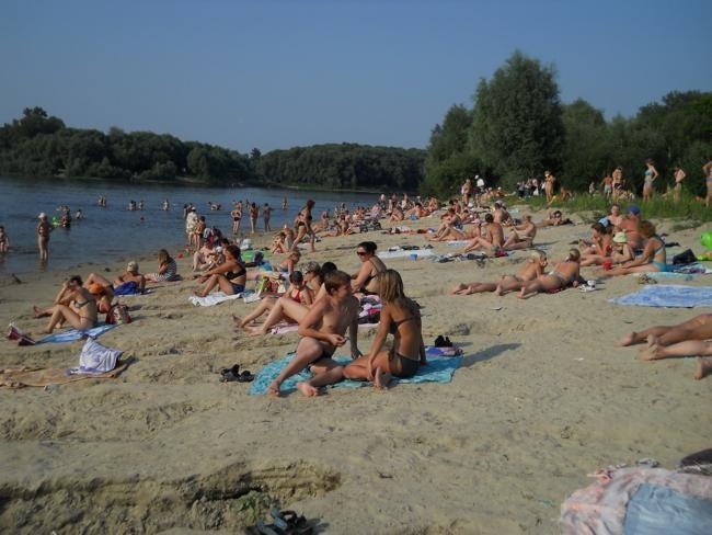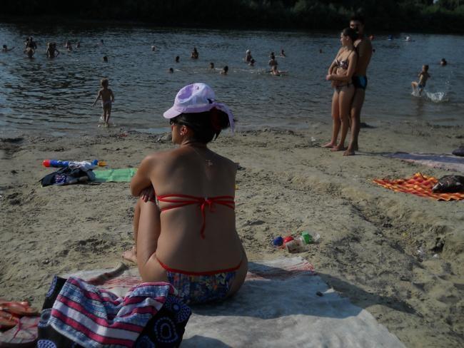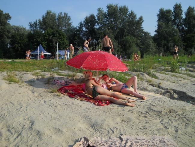 Татьяна и дочь Ева: мы за лето на пляже 3-й или 4-й раз. Наши водоемы не люблю. В этом году на море съездить не удалось – пришли на речку. Здесь хорошо детям – есть лягушатник и они могут барахтаться в воде. И нам близко от дома. У нас есть шапочка, круг, нарукавники. Еды взяли много. С нами бабушка – она об этом позаботилась. Обычно ездим на озеро за киевским мостом. Плохо, что хулиганы расписали раздевалки. Во время отдыха на реке надо исключить алкоголь и следить за детьми. Оценка пляжу – 3.