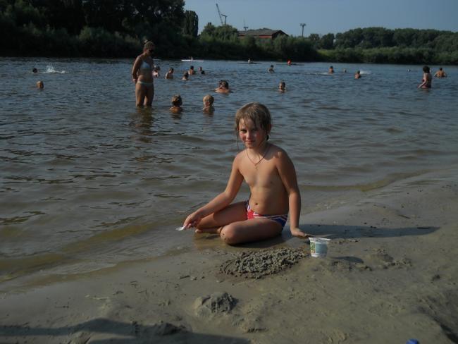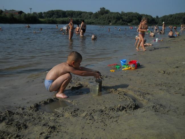 Сюда пришли случайно. Как оказалось, здесь хорошо с детьми – не глубоко. За лето находились на пляж уже достаточно. С собой у нас полотенца, покрывала, семечки, еда. Уже развлеклись на воде – ныряли. Вынырнули все – ура! На пляже нужно больше урн для мусора и горки.