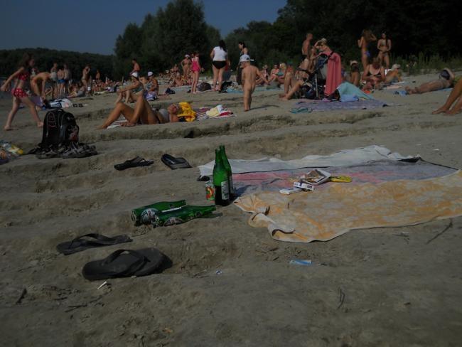 Репортаж с берега у лодочной станции. На гигиеническое состояние этого пляжа тогда обиделась даже погода. Наверное, поэтому целых две недели она и не давала нам возможностей позагорать-поплавать.