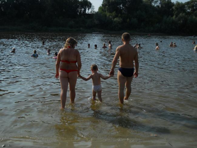 Евгений Ледовой с детьми Валентином и Викторией: мы сюда приезжаем на 33-м. Удобно и быстро. Здесь не глубоко, дети купаются, а я контролирую. Конечно, когда дети в воде, отвлекаться нельзя. Приходим почти каждый день, даже после работы. А сегодня у меня первый день отпуска – пришли пораньше. Детям взял печенье, бананы, сок. Для развлечений – водный пистолет, ведерко и лопатка. По сравнению с прошлым годом стало гораздо чище. Из техники безопасности – загорать лучше утром и после 16-ти часов. Осторожным надо быть и на глубине.