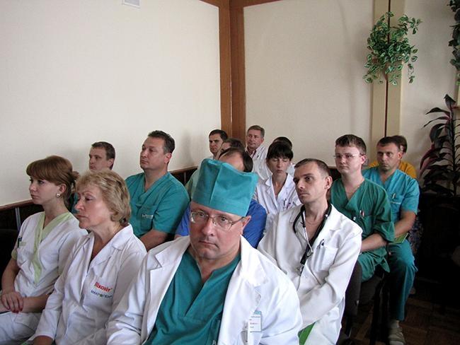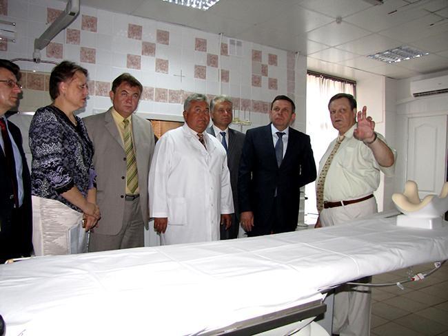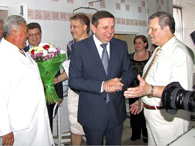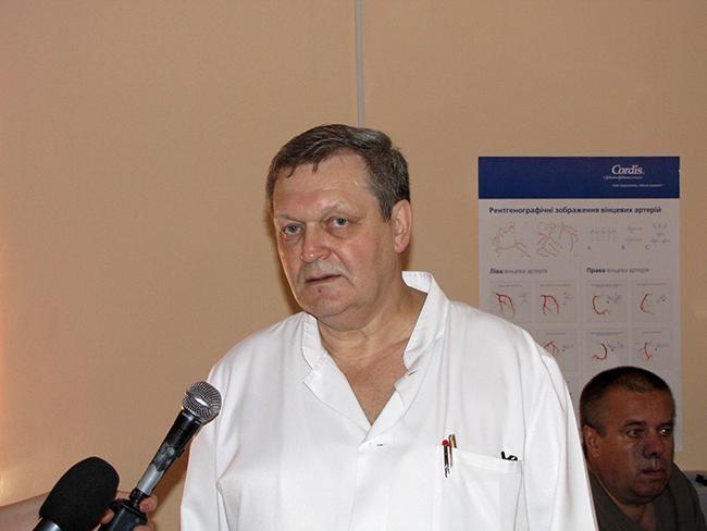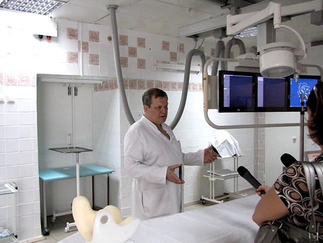 Представил присутствующим новое оборудование заведующий отделением сердечно-сосудистой хирургии Черниговской городской больницы № 2 Владимир Герасимов. По его словам, проведение операции при помощи нового оборудования выглядит так: через одну точку в артерии вводится система специальных инструментов и по рентгеновскому изображению высокого качества, дистанционно, выполняется операция на сосудах с высоким результатом. Такое хирургическое вмешательство легче переносится пациентами, сокращается срок пребывания их в больнице.