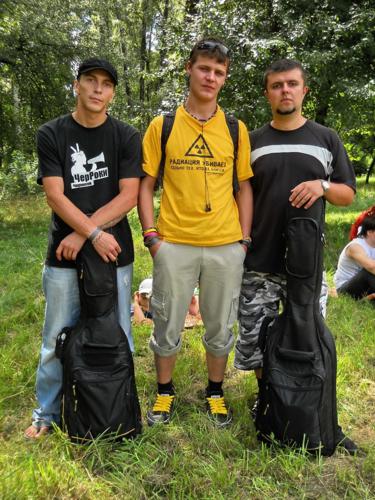 Шнур, Купол, Кефир, Зайка и Артем – представители черниговских рок-групп – «О.М» и «Без Мазга»: мы пришли на фест с целью нести рок в массы. Запланировали отыграть 7 композиций. Все наше, обходимся без каверов (перепевок). На фестах уже выступали, многих музыкантов знаем. Наши составы хоть и меняются, но тема остается. Всем группам хорошего выступления.