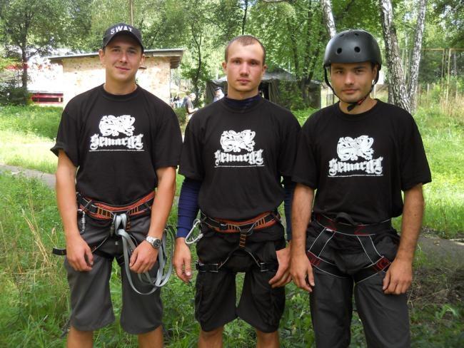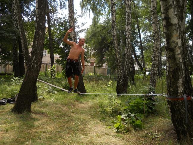 Александр Михайлов, капитан клуба «Семаргл»: членов нашего клуба здесь 15 человек. Задачи две – организация экстрим-развлечений и помощь сотрудникам милиции. Для любителей адреналина сделали веревочный городок – можно лазить, прыгать и съезжать. Предложим рокерам и новинку – СЛЭК-ЛАЙМ – это трюки на натянутой стропе. Проведем и пару мастер-классов.