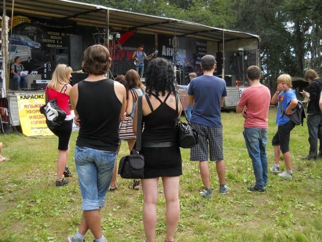 В 11 часов раздались первые звуки музыки. Это «главный» караокер города Леонард Ширай попытался «пробудить от спячки» гостей фестиваля, пришедших пораньше и улегшихся в тенек немного подремать. В конце концов, сделать это ему удалось – настойчивые предложения размять голосовые связки с помощью караоке, возымели свое действие. Рокеры запели. Причем, не только любимый рок, но и известные детские шлягеры.