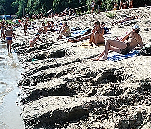 Берег пляжа, который раньше полого спускался к реке, сейчас напоминает гипотенузу треугольника с углом в сорок пять градусов. Лежать на таком склоне невозможно - сползаешь вниз, да и бока болят -песка нет совсем, вместо него вылезла наружу темно-серая земля с корневищами деревьев. Еще одного разлива будущей весной такой рыхлый берег не выдержит - масса незакрепленного грунта подмоется паводком, обрушится в речку и приблизит линию берега намного ближе к зеленым зарослям, так мало похожим на удобный пляж.