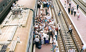 Возле касс по продаже билетов железнодорожного вокзала несколько небольших очередей. Получив вожделенные билеты, люди отходят в сторону. Трудно было приобрести билет?