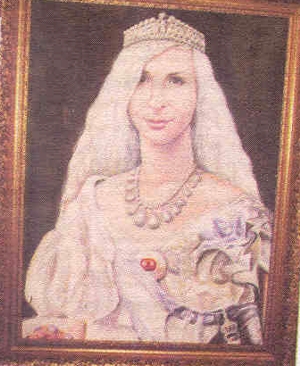 На портрете Ирина Ковалева в образе королевы, похоже, Анны Австрийской (супруги Людовика XIII. Помните кино про д'Артаньяна?).