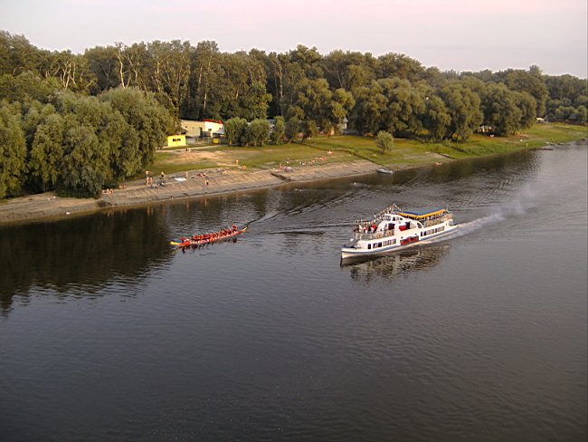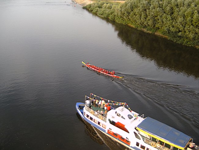 Вчера вечером с семьей были на прогулке на пешеходном мосту, и наблюдали очень смешную, интересную и даже можно сказать "прикольную" картину, прогулочный катер из Речпорта и байдарка черниговской команды "Драконы" играли на перегонки. Это привлекло внимание всех, кто в это время был там. Соревнования, конечно, были шуточные, но было интересно. В результате победила команда байдарочников, за что и была награждена бурными овациями.
