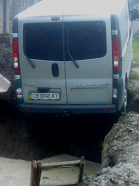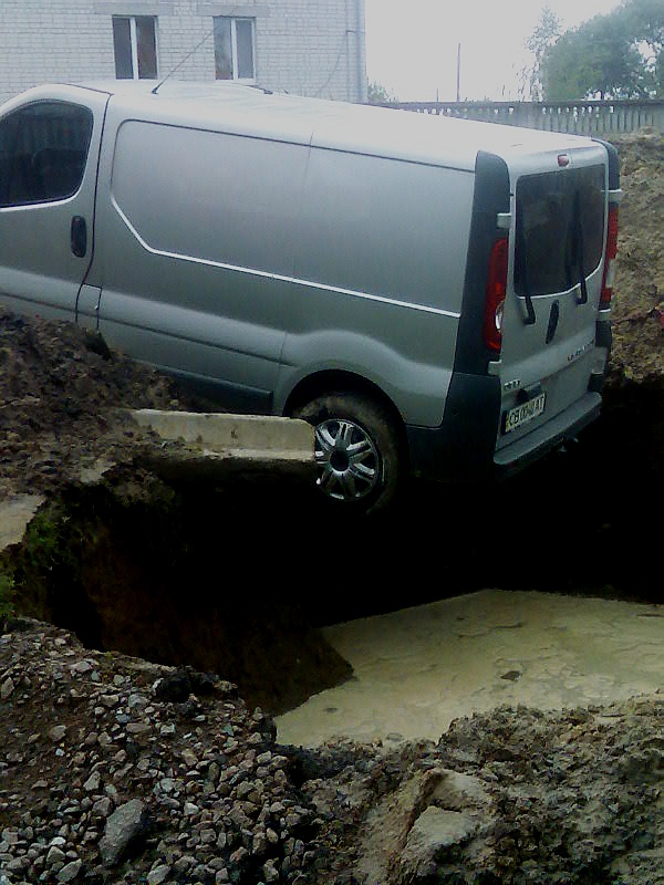 Этот курьез произошел ночью со среды на четверг возле кафе «У пані Ірины», после сильного ливня. Водителя на месте не оказалось. Видно поехал за подмогой интересно кто же был за рулем? Будьте осторожны, и не оставляйте свое авто без присмотра, особенно на аварийных участках дорожного покрытия.
