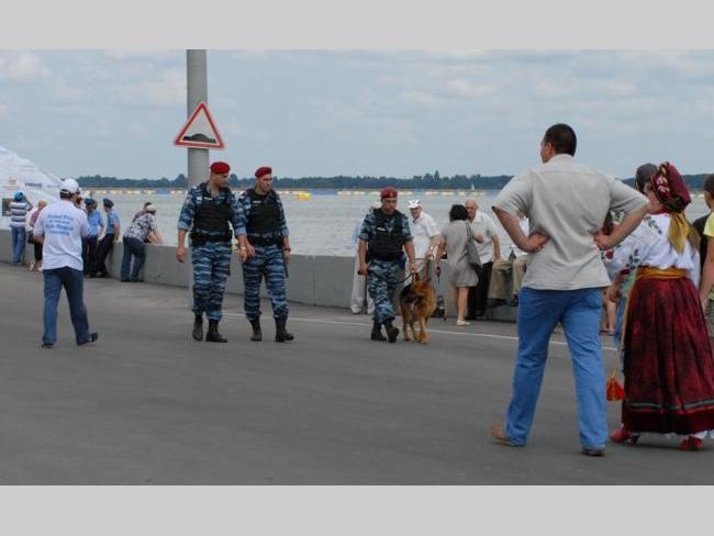 Волонтеры разносили буклет, посвященный этапу в Вышгороде, подсказывали, как найти свою трибуну или необходимый ларек. Надо сказать, что организаторы соединили спортивный праздник с днем города, поэтому на территории искусственно созданного городка можно было найти палатки всех районов Киевской области. Представителям СМИ удалось даже проехать, во время показательных заездах на двухместных болидах F1. Специальная зона, где расположились палатки участников, причал с кранами для поднятия катамаранов из воды, вип-трибуны — все находилось под неусыпной охраной. Каждый выезд болидов на поверхность акватории сопровождался ревом моторов и заставлял присутствующих обращать свое внимание на трассу.