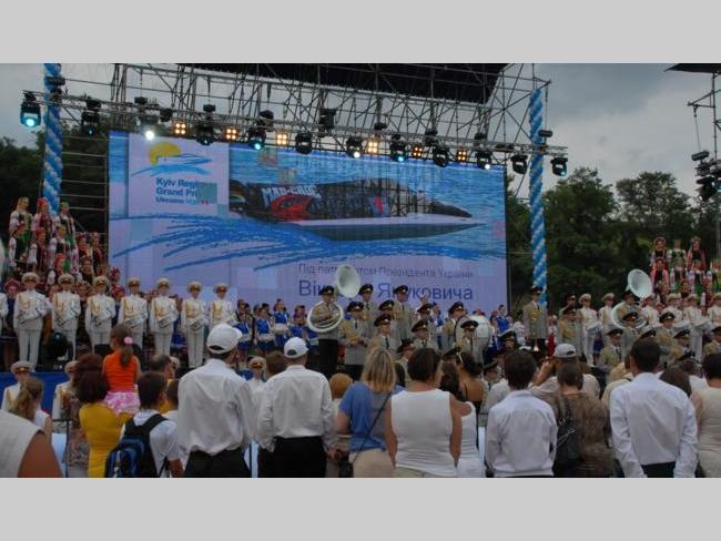Торжественное открытие состоялось в 17.00. Болиды, пройдя почетным кругом по трассе, выстроились вдоль причального бона, носами к трассе, слева направо по результатам предварительных заездов. Вместе с ними на специальном катере подъехал и глава Киевской облгосадминистрации Анатолий Присяжнюк.