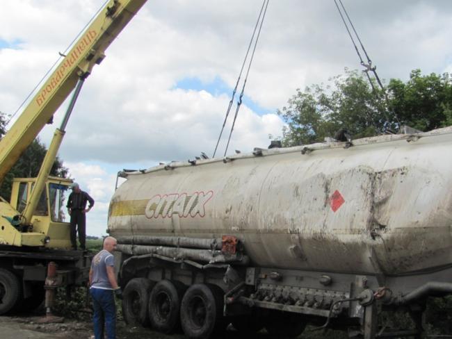 На Чернігівщині цистерна з газовим конденсатом злетіла у кювет (фото)