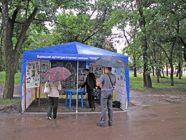 4 серпня, на території Валу, біля обласного історичного музею адміністрацією та працівниками Національного архітектурно-історичного заповідника «Чернігів стародавній» було встановлено намет з метою проведення науково-просвітницької діяльності та роз’яснювальної роботи щодо заборони в’їзду транспортних засобів на територію міського парку ім. М.М.Коцюбинського. Для засобів масової інформації була проведена прес-конференція за участю: директора заповідника Андрія Курданова та наукового співробітника Сергія Чернякова.