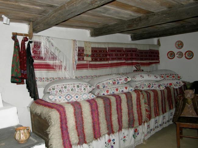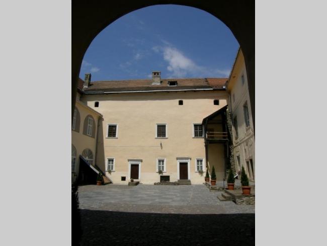 Внутри - небольшой замковый дворик с выдолбленным в скале колодцем. Сегодня все помещения дворца занимают экспозиции Закарпатского краеведческого музея. Особенно впечатляет коллекция народных музыкальных инструментов Закарпатья с обязательными для этого региона трембитами, а также коллекции старинной резной мебели и традиционного закарпатского костюма.