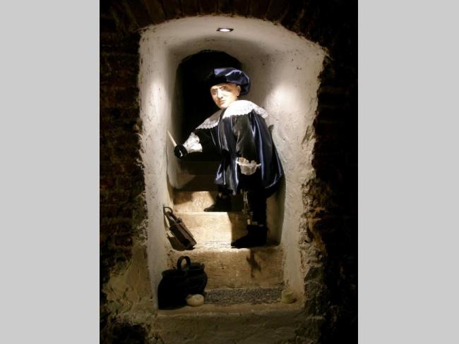 В эпоху Средневековья действительно существовал такой обычай – замуровывать человека живьем в стены фортификаций – это будто-бы усиливало обороноспособность крепости! В казематах также можно «полюбоваться» восковыми фигурами палача, тюремщика, инквизитора, а также их жертвы, ознакомиться с макетами Ужгородского замка.