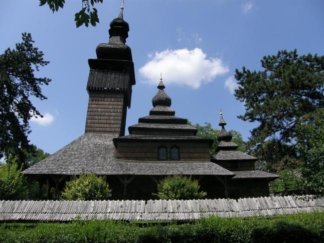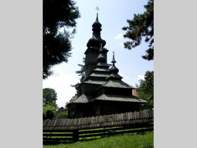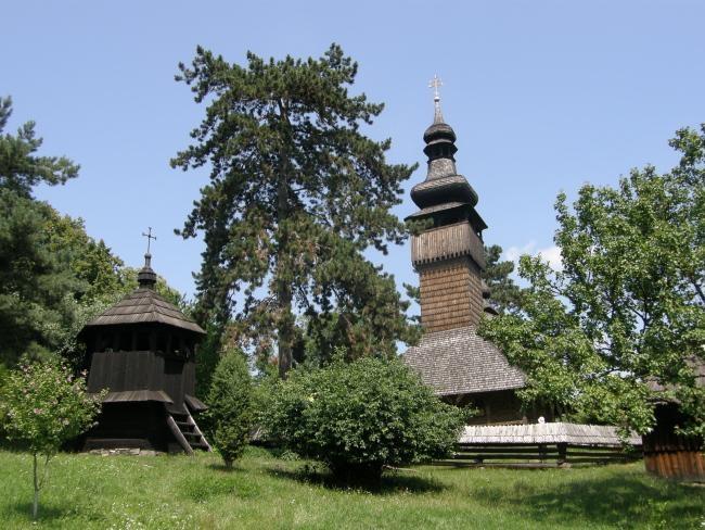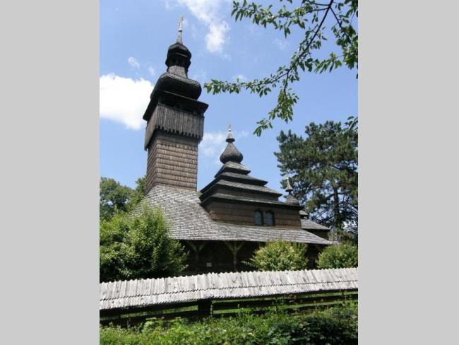 Прямо у стен замка расположился музей народной архитектуры Закрпатья, где два десятка жилых, хозяйственных и культовых построек образовали небольшое самостоятельное село. Среди экспонатов – 250-летняя хата, возведенная из больших колотых ясеневых бревен, гуцульская гражда, деревянная корчма и др. Однако наиболее интересный и ценный экспонат музея – барочная лемковская деревянная Михайловская церковь (1777 г.) с высокой башней-звонницей, на фоне которой многоярусный основной обьем храма и его алтарная часть выглядят похожими на китайские пагоды.