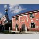 Одной же из самых экзотичных построек Ужгорода является здание хоральной синагоги, возведенной 100 лет назад в мавританском стиле на самом берегу р.Уж. Теперь здесь живут музы – в бывшей синагоге ныне располагается филармония. На другом берегу реки, на т.н. Православной набережной, красуется русская Покровская церковь, шатровый верх и пузатые столбы которой напоминают московские храмы 16 века. Дата постройки церкви кажется довольно необычной - 30-е гг. прошлого столетия, когда, скажем, у нас, наоборот, храмы только разрушали, и уж никак не строили.