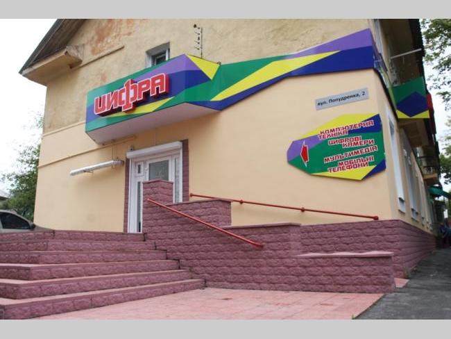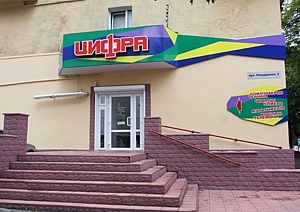 Адрес магазина очень простой: ул. Попудренко, 2. Да и найти его — проще простого! Представьте, что вы стоите возле танка на Кругу и смотрите чуть влево. Видите — двухэтажный желтый домик? А на нем яркая крупная вывеска. Вот она — «Цифра»! Всё, что вам нужно.