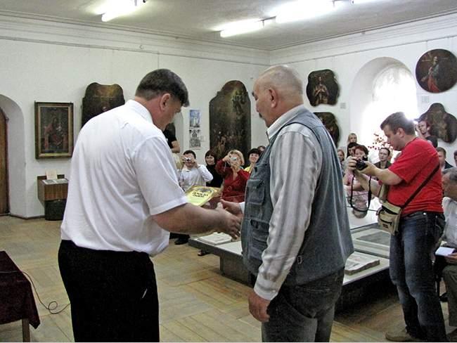 Коллектив заповедника поблагодарил гостя за содержательную беседу и подарил ему сувенирную бутылку в виде символической пушки.