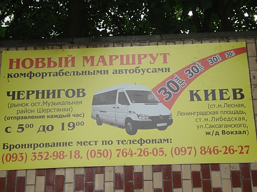 Молодой человек по имени Роман, подходя к переходу со стороны Шерстянки, уткнулся глазами в новенький двухметровый баннер, висящий на плите над переходом. «Очень кстати, – подумал он, – собираюсь в Киев, а тут рекламируют автобус от Музыкалки, да еще за 30 гривен».