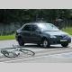 Пошкоджено велосипед і автомобіль. Водій авто (на фото – у блакитній майці з татуюванням) впевнений у власній правоті і в тому ж обурено переконував присутніх.